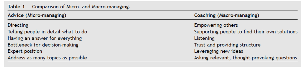 Ahora que vamos a pasar la docencia a online y tengo que repensar mi papel en el aula (donde normalmente me dedico a observar y dar feedback/feedforward), me asalta la duda de si el “coaching” y el “micromanagement” son las dos caras (la buena y la mala) de una misma moneda.