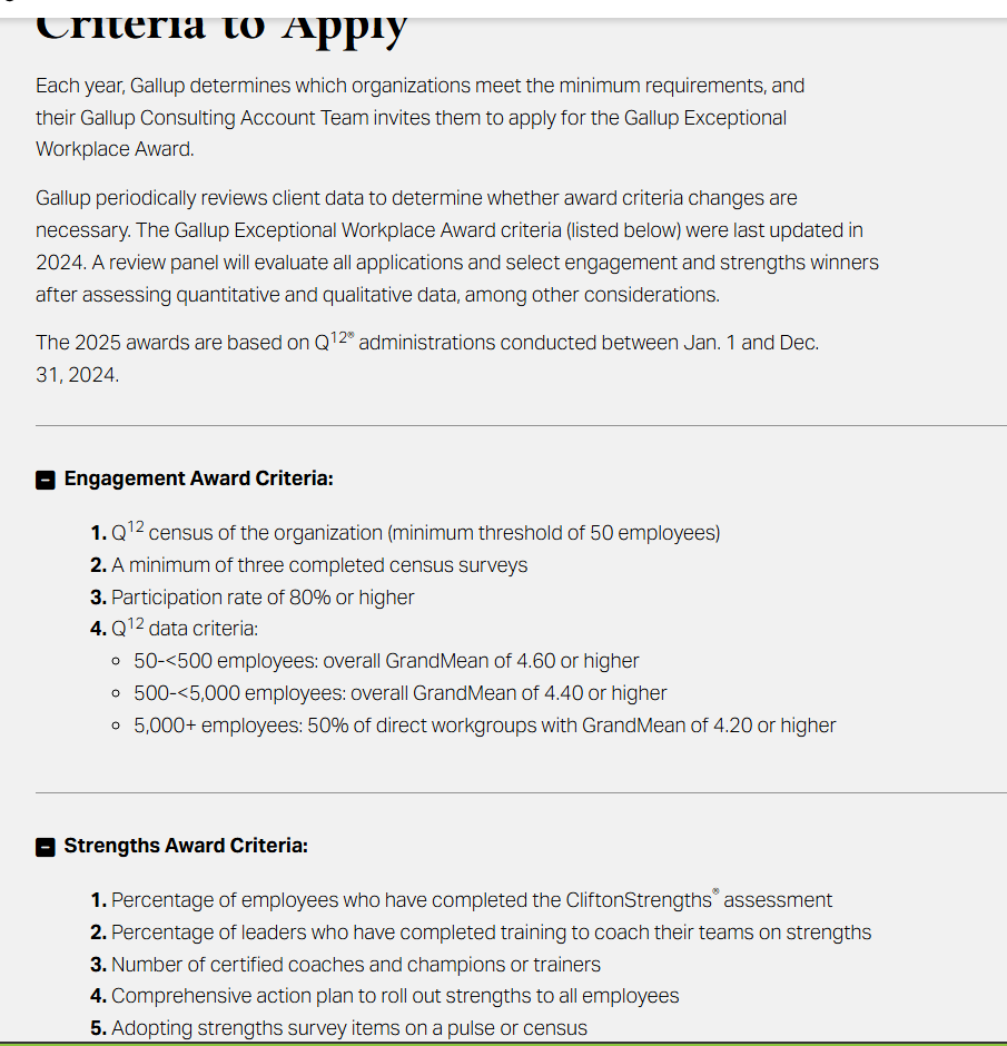 Resulta que parece ser todo una tremenda (¿e impresentable?) tautología. Si no me equivoco, para estar en la lista The Gallup Exceptional Workplace Award | Apply lo que te piden es que tengas un alto engagement.