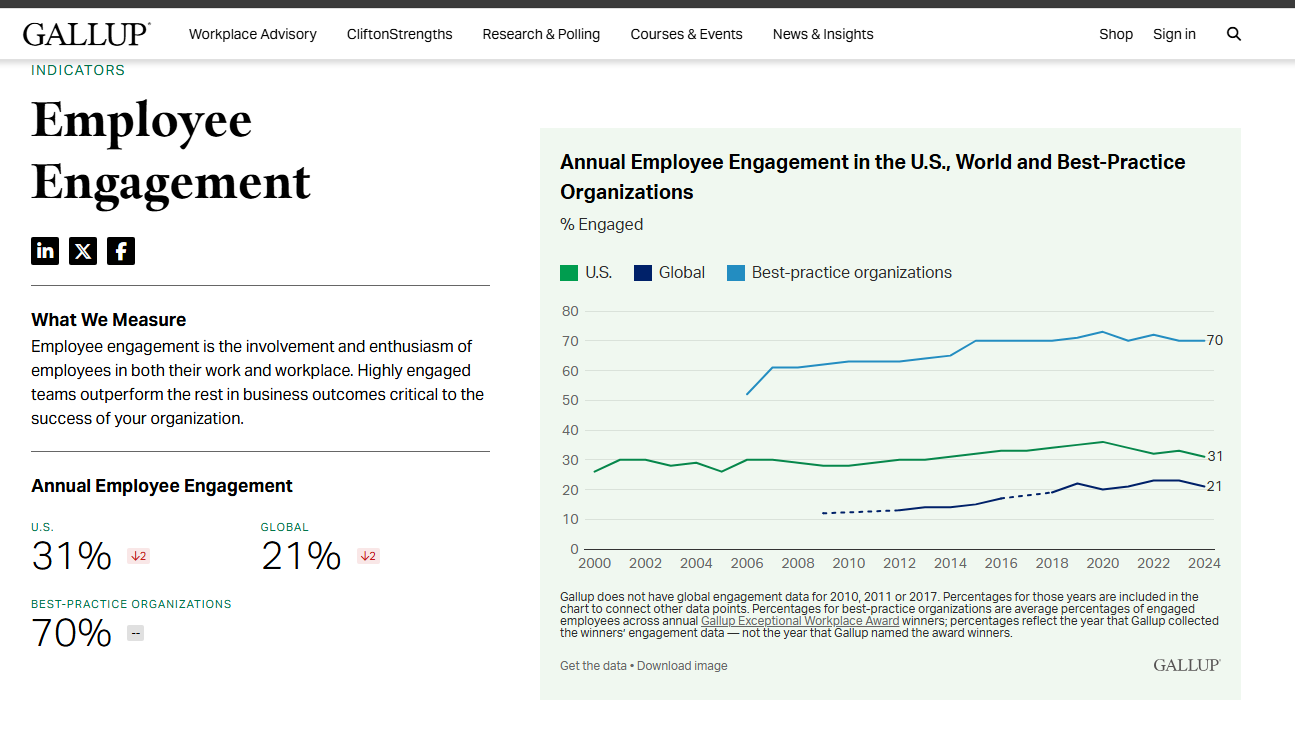 Permitidme ser crítico con esta entrada de Gallup Global Indicator: Employee Engagement – Gallup