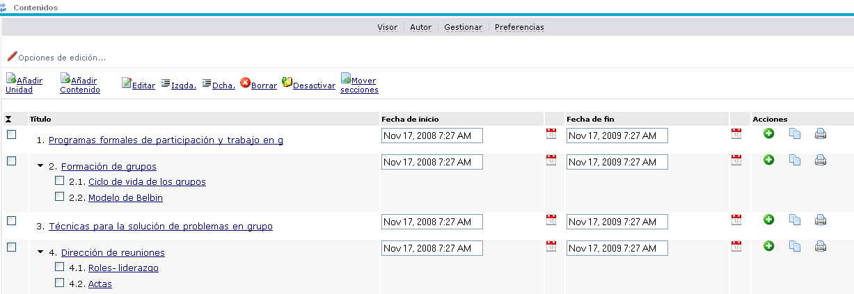 Se usa un modulo de desarrollo de contenidos (mira la imagen). no se si es algo que han creado en la UPV o si venía con sakai.