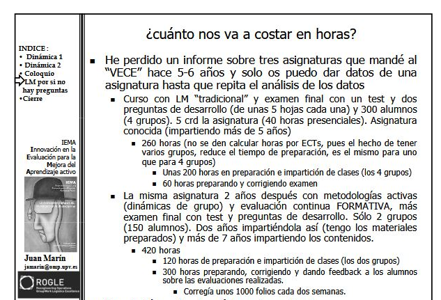 Por añadir un matiz que contribuya a lo que comenta Asier, a mí me gusta recalcar que busco potenciar la “actividad neuronal” en mis clases. Lo hago para que no se confunda con que mis estudiantes solo “se muevan en al aula” o que “hagan cosas diferentes de tomar apuntes”. Solo eso no convierte la clase en activa. Debo (o a eso aspiro) ayudarles a que se creen nuevos conocimientos/habilidades/actitudes (aunque sea micro cambios en una sesión) y/o se conecten de forma distinta los conocimientos/habilidades/actitudes que ya poseen. Eso es para mi la esencia de las metodologías activas (todo lo demás son herramientas, más o menos llamativas, que no siempre “activan” demasiado 😉 ).